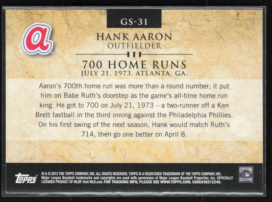 2012 Topps #GS-31 Hank Aaron Gold Standard