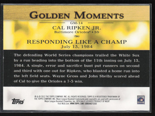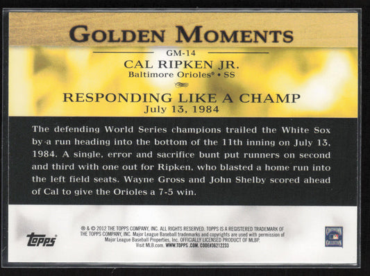2012 Topps #GM-14 Cal Ripken Jr. Golden Moments (Series 2)
