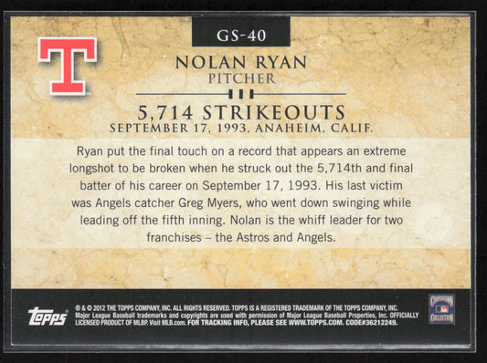 2012 Topps #GS-40 Nolan Ryan Gold Standard