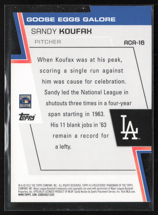 2012 Topps #ACA-16 Sandy Koufax A Cut Above
