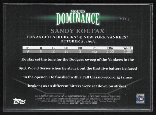 2012 Topps #MD-3 Sandy Koufax Mound Dominance