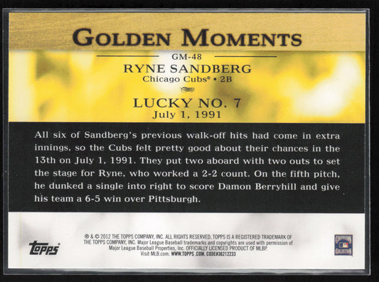 2012 Topps #GM-48 Ryne Sandberg Golden Moments (Series 2)