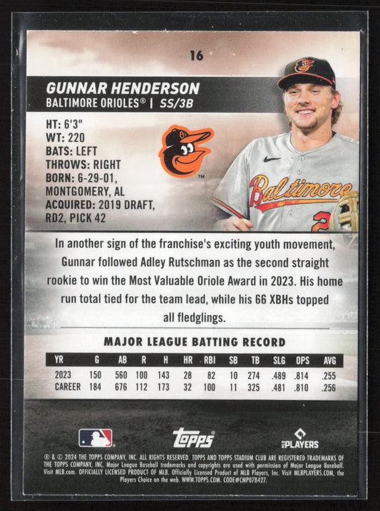 2024 Stadium Club #16 Gunnar Henderson Red Foil