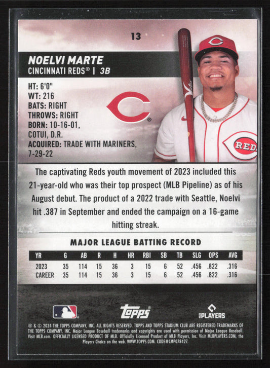 2024 Stadium Club #13 Noelvi Marte Red Foil
