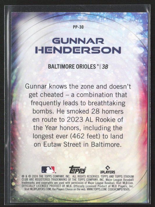 2024 Stadium Club #PP-30 Gunnar Henderson Power Packed