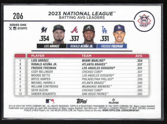 2024 Topps #206 NL Batting (Luis Arraez / Ronald Acuña Jr. / Freddie Freeman)