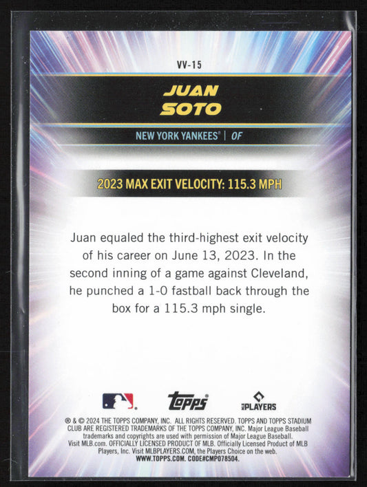 2024 Stadium Club #VV-15 Juan Soto Virtuosos of Velocity
