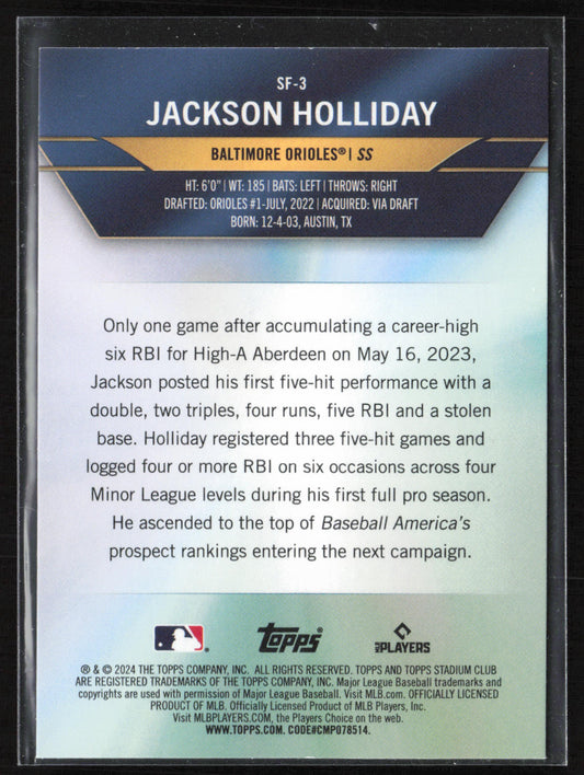 2024 Stadium Club #SF-3 Jackson Holliday Special Forces