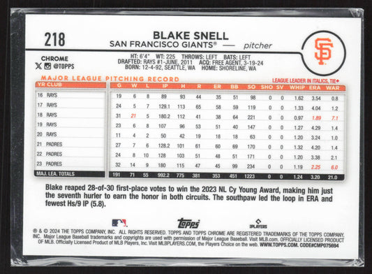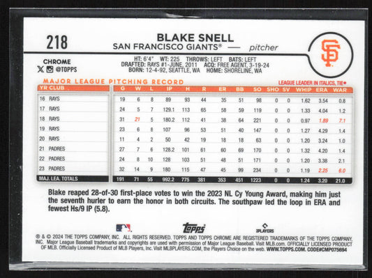 2024 Topps Chrome #218 Blake Snell Negative Refractors
