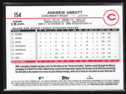 2024 Topps Chrome #154 Andrew Abbott Raywave Refractors