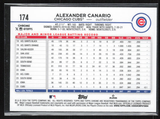 2024 Topps Chrome #174 Alexander Canario X-Fractors