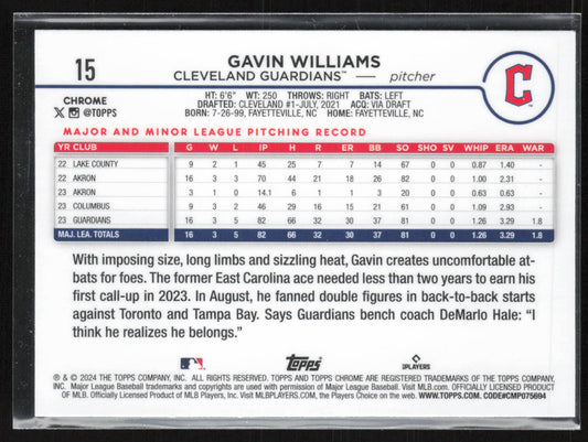 2024 Topps Chrome #15 Gavin Williams X-Fractors