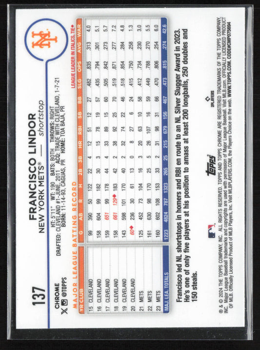 2024 Topps Chrome #137 Francisco Lindor X-Fractors
