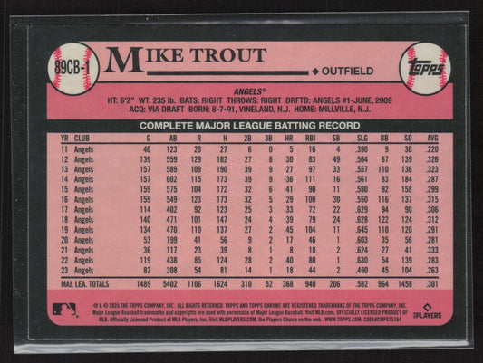 2024 Topps Chrome #89CB-1 Mike Trout 1989 Topps Baseball 35th Anniversary