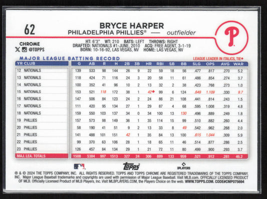 2024 Topps Chrome #62 Bryce Harper Raywave Refractors
