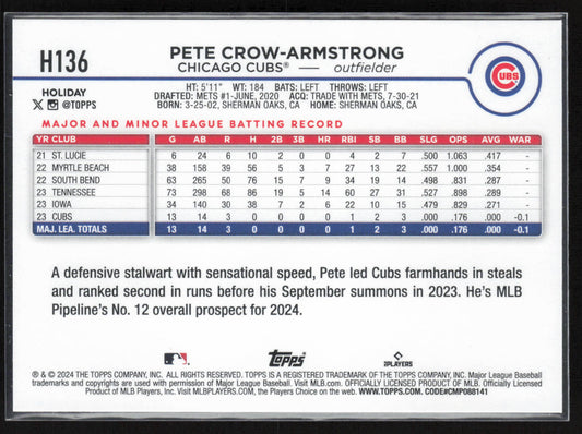 2024 Topps Holiday #H136 Pete Crow-Armstrong