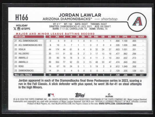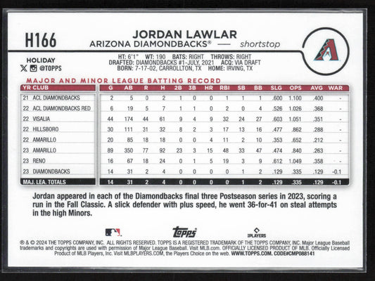 2024 Topps Holiday #H166b Jordan Lawlar SP - Lights