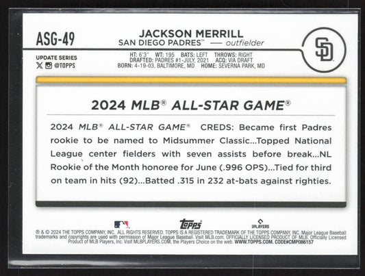 2024 Topps Chrome Update #ASGC-49 Jackson Merrill 2024 All Star Game Chrome