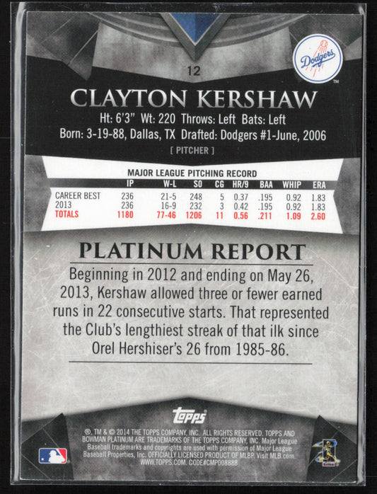 2014 Bowman Platinum #12 Clayton Kershaw