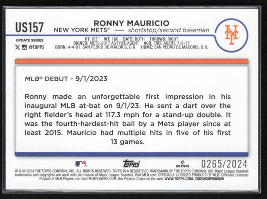 2024 Topps Update #US157 Ronny Mauricio Gold #/2024