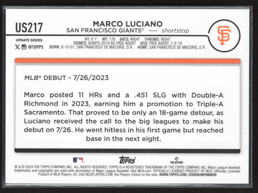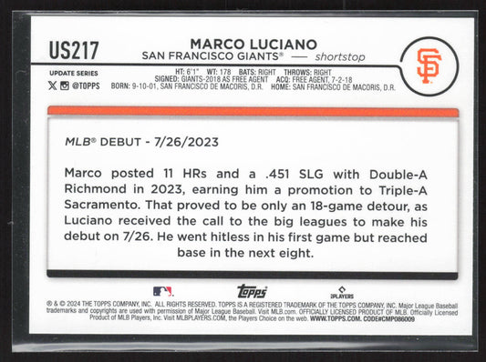 2024 Topps Update #US217 Marco Luciano Royal Blue