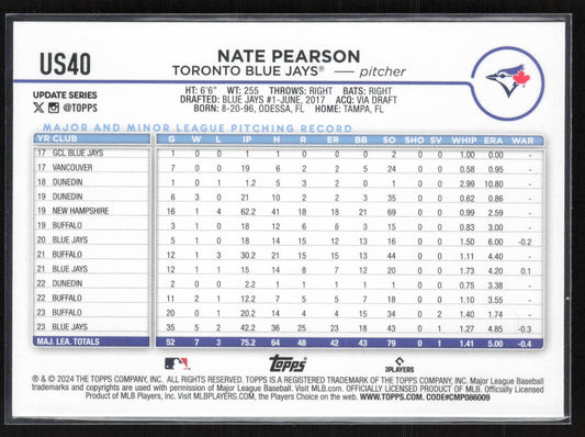 2024 Topps Update #US40 Nate Pearson Rainbow Foil