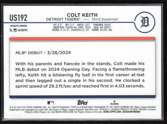 2024 Topps Update #US192 Colt Keith Rookie Debut