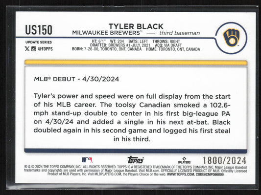 2024 Topps Update #US150 Tyler Black Gold #/2024
