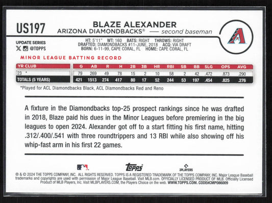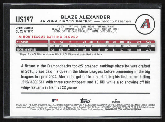 2024 Topps Update #US197 Blaze Alexander Rainbow Foil