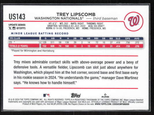 2024 Topps Update #US143 Trey Lipscomb Yellow