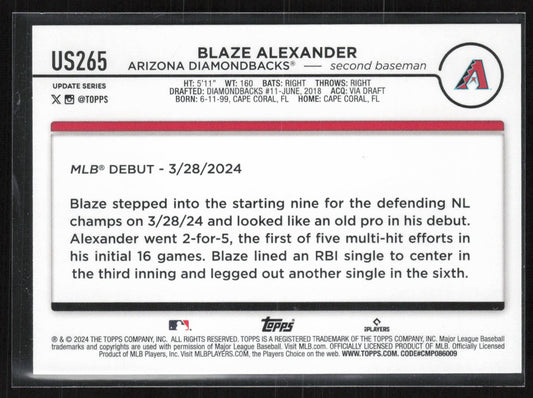 2024 Topps Update #US265 Blaze Alexander Yellow