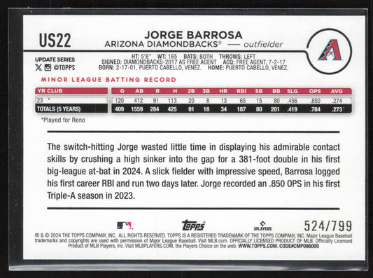 2024 Topps Update #US22 Jorge Barrosa Purple