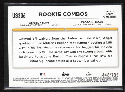 2024 Topps Update #US306 Easton Lucas / Angel Felipe RCOM Purple Holofoil