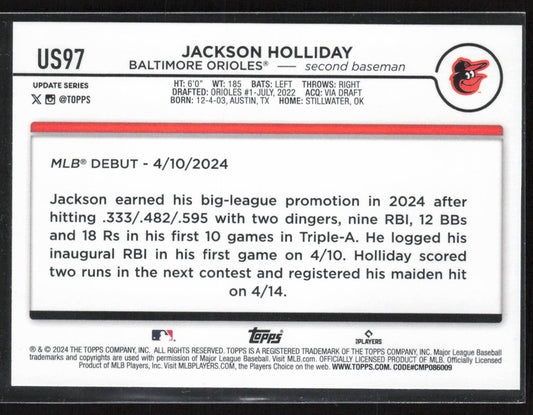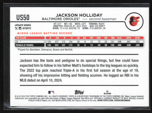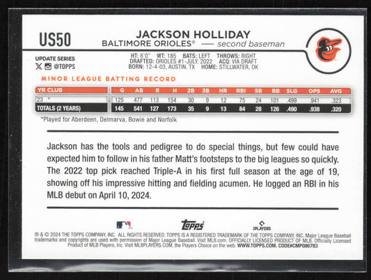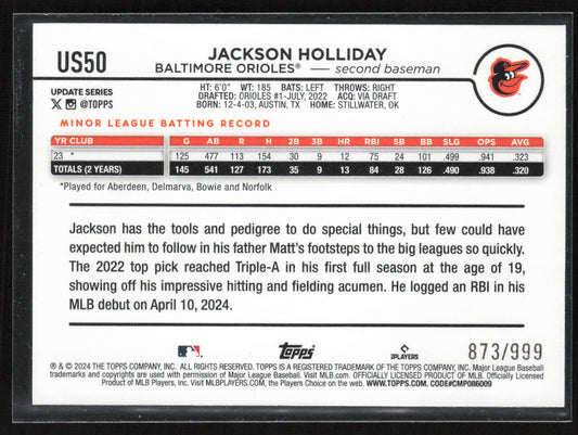 2024 Topps Update #US50 Jackson Holliday Blue Holofoil #873/999