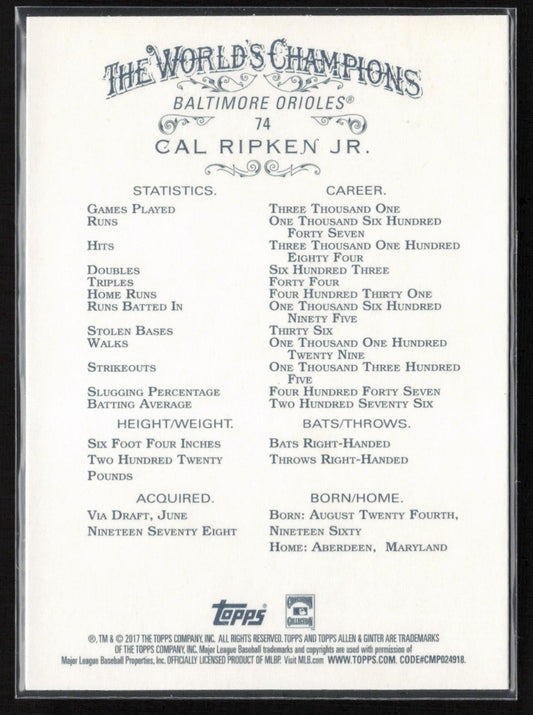2017 Topps Allen & Ginter #74 Cal Ripken Jr.