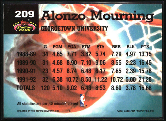 1992-93 Stadium Club #209 Alonzo Mourning Members Only
