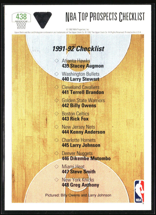 1991-92 Upper Deck #438 NBA Top Prospects (Billy Owens / Larry Johnson)