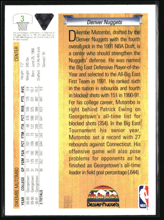1991-92 Upper Deck #3 Dikembe Mutombo