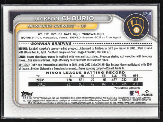 2024 Bowman #BCP-140 Jackson Chourio Chrome Prospects