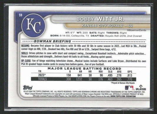 2024 Bowman #59 Bobby Witt Jr. Chrome Mojo Refractors