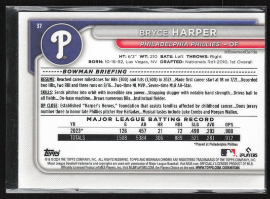 2024 Bowman #37 Bryce Harper Chrome Mojo Refractors