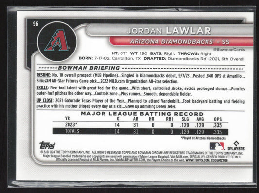 2024 Bowman #96 Jordan Lawlar Chrome Mojo Refractors