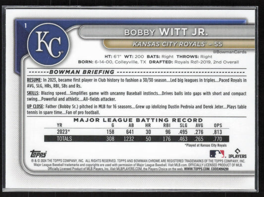 2024 Bowman Chrome #1 Bobby Witt Jr. Mojo Refractors