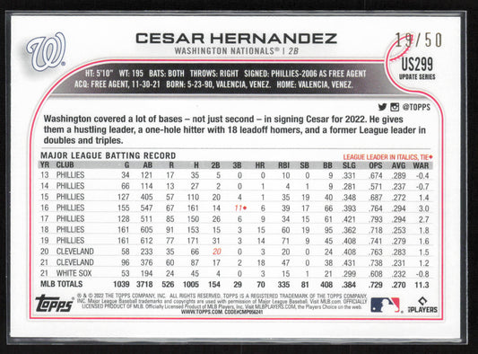 2022 Topps Update #US299 Cesar Hernandez Father's Day Blue #19 of 50