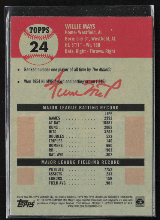 2022 Topps Chrome Platinum Anniversary #24 Willie Mays Blue Prism Refractor