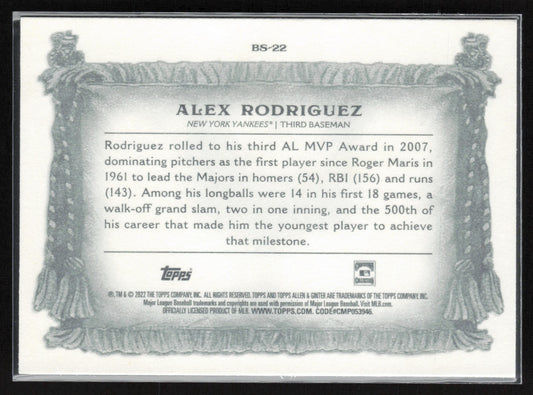 2022 Topps Allen & Ginter #BS-22 Alex Rodriguez Banner Seasons