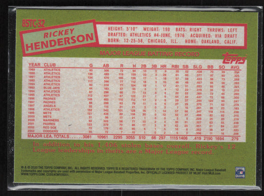2020 Topps #85TC-32 Rickey Henderson 1985 Topps Chrome Silver