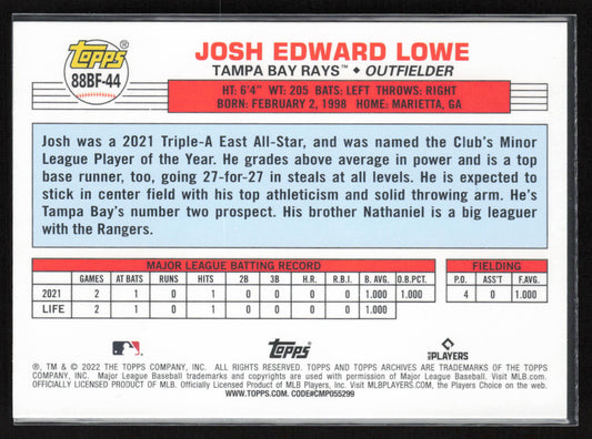 2022 Topps Archives #88BF-44 Josh Lowe 1988 Topps Big Foil