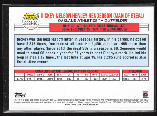 2022 Topps Archives #88BF-30 Rickey Henderson 1988 Topps Big Foil