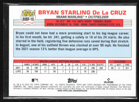 2022 Topps Archives #88BF-10 Bryan De La Cruz 1988 Topps Big Foil Autographs